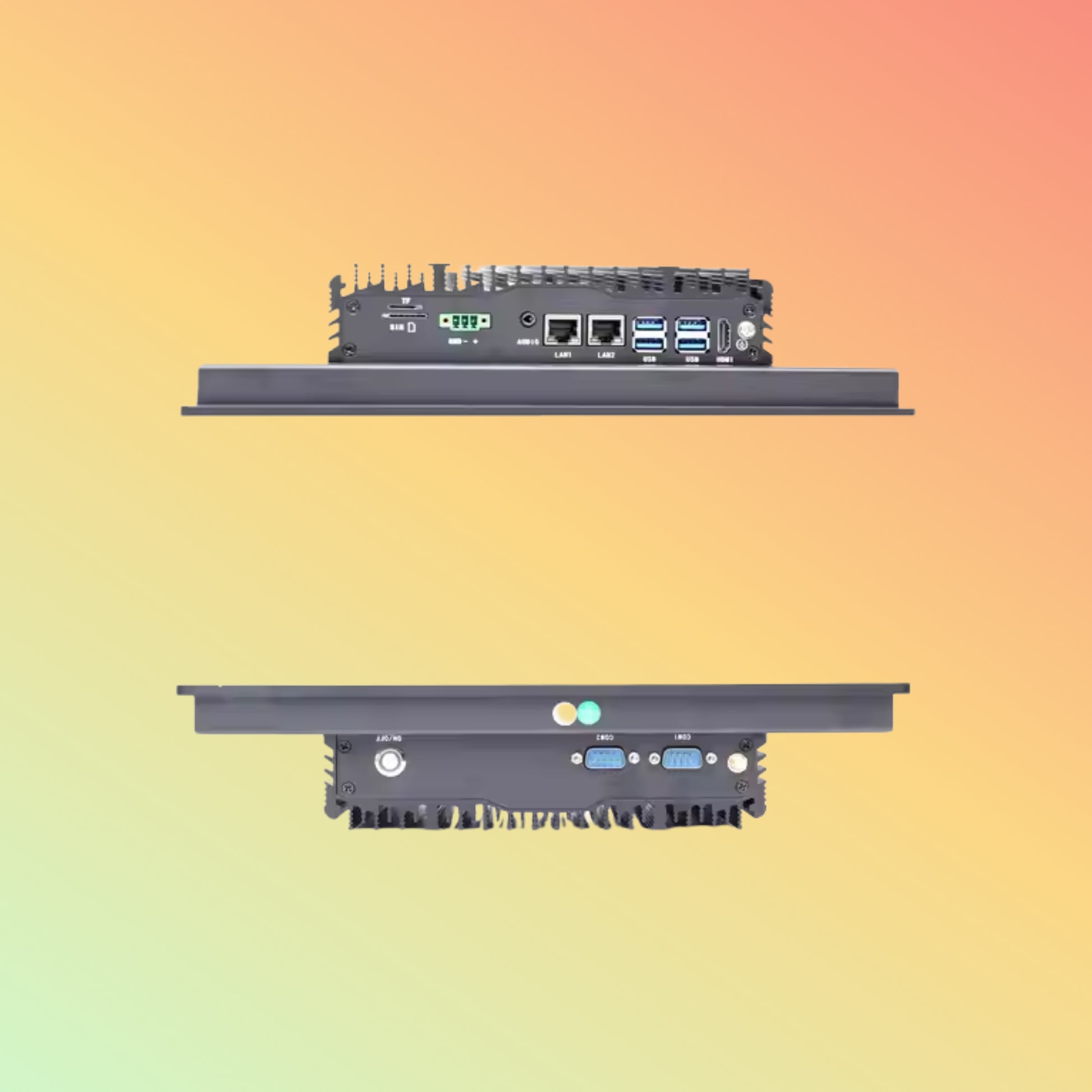 This industrial touch PC features a 4-wire resistive touchscreen that works with gloves or stylus. The anodized aluminum chassis and full IP65 sealing resist spray and particulates. Inside, you get an Intel Celeron J1900 (upgradable to Core™ i3) plus an integrated M.2 SIM module slot. Dual Gigabit LAN, USB and COM ports, plus optional GPS keep you covered. Preloaded Windows Embedded or Windows 10 IoT runs your HMI, SCADA, or edge-analytics apps in seconds. VESA and panel-cutout mounts simplify installation into any cabinet or control panel.