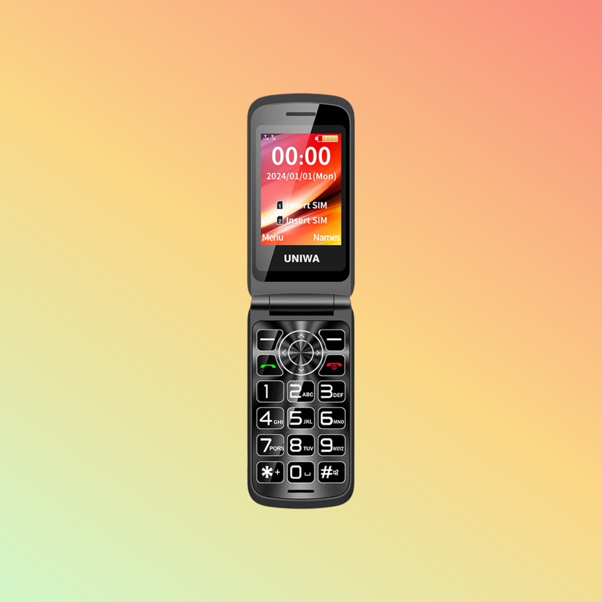 UNIWA F106 retro flip phone with dual screen, T9 keypad & 4G. Stylish Chinese design for seniors & minimalists. Order now from NEOTECH UAE.
