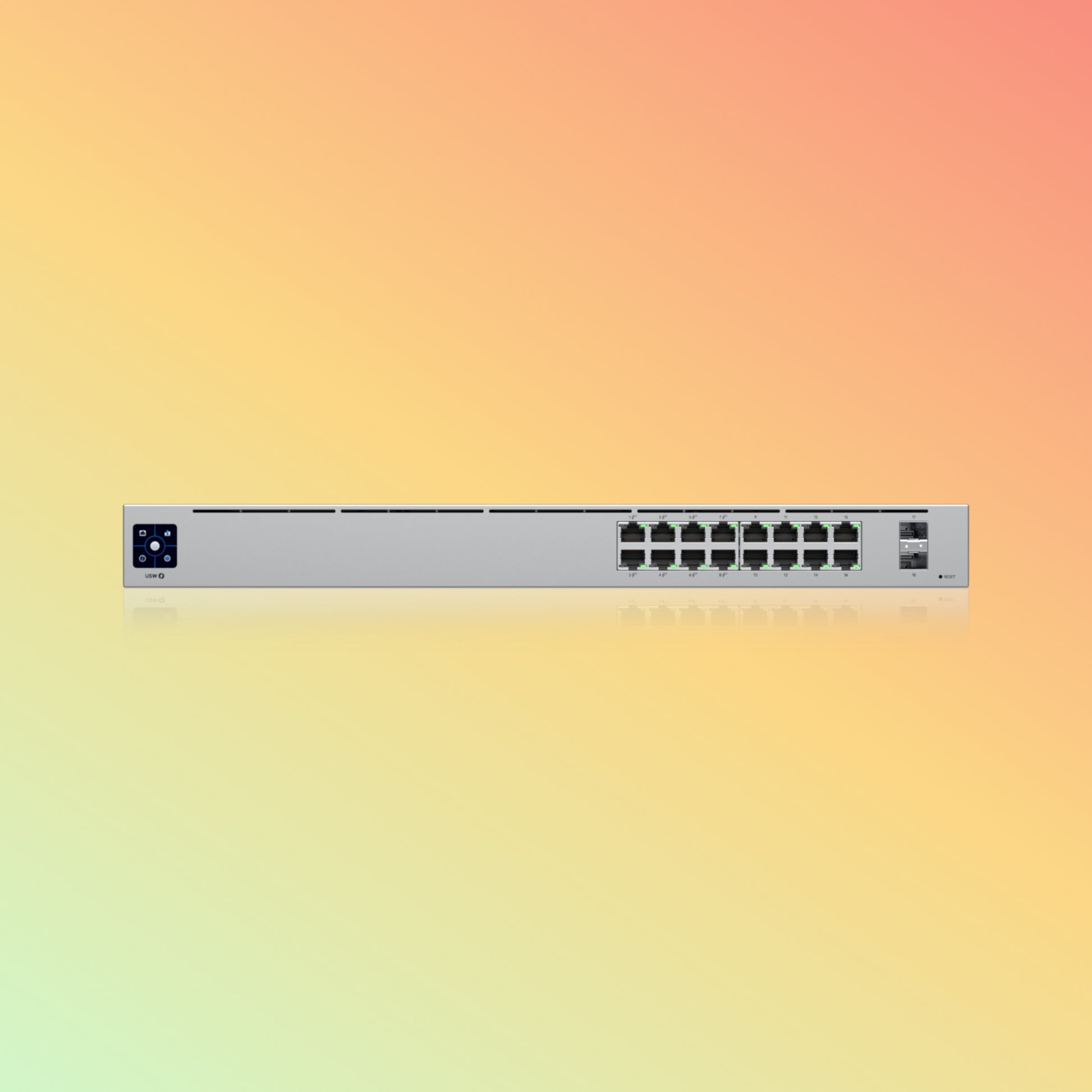 - Ports: 16x Gigabit Ethernet PoE ports, 2x SFP ports